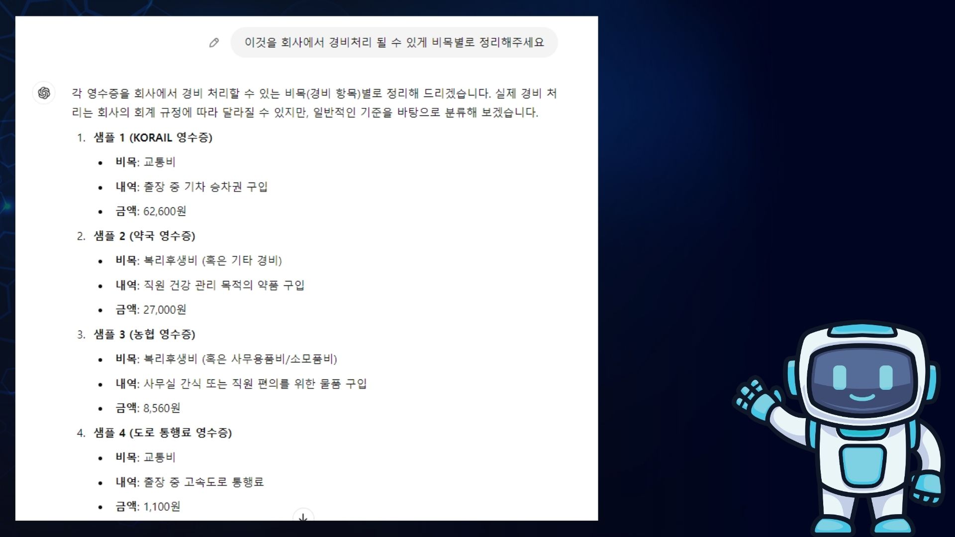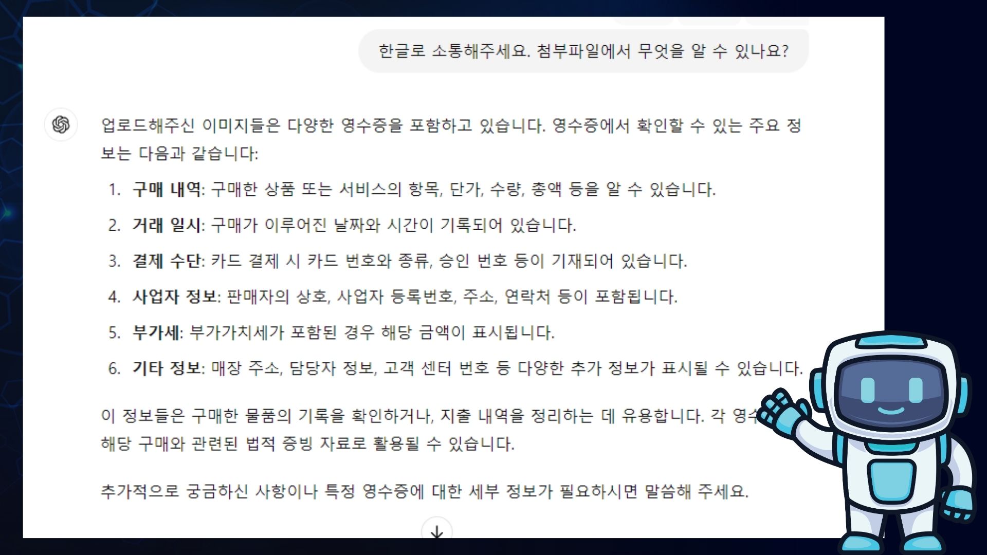 챗GPT가 단순한 텍스트 생성 도구가 아닌, 급식 업무에서 다방면으로 활용할 수 있는 도구라는 점을 강조했죠. 특히 아숙업(AskUp)을 활용한 이미지 OCR 기능을 시연하며, 음식 사진에서 칼로리 정보를 추출하는 모습을 보여드렸습니다.