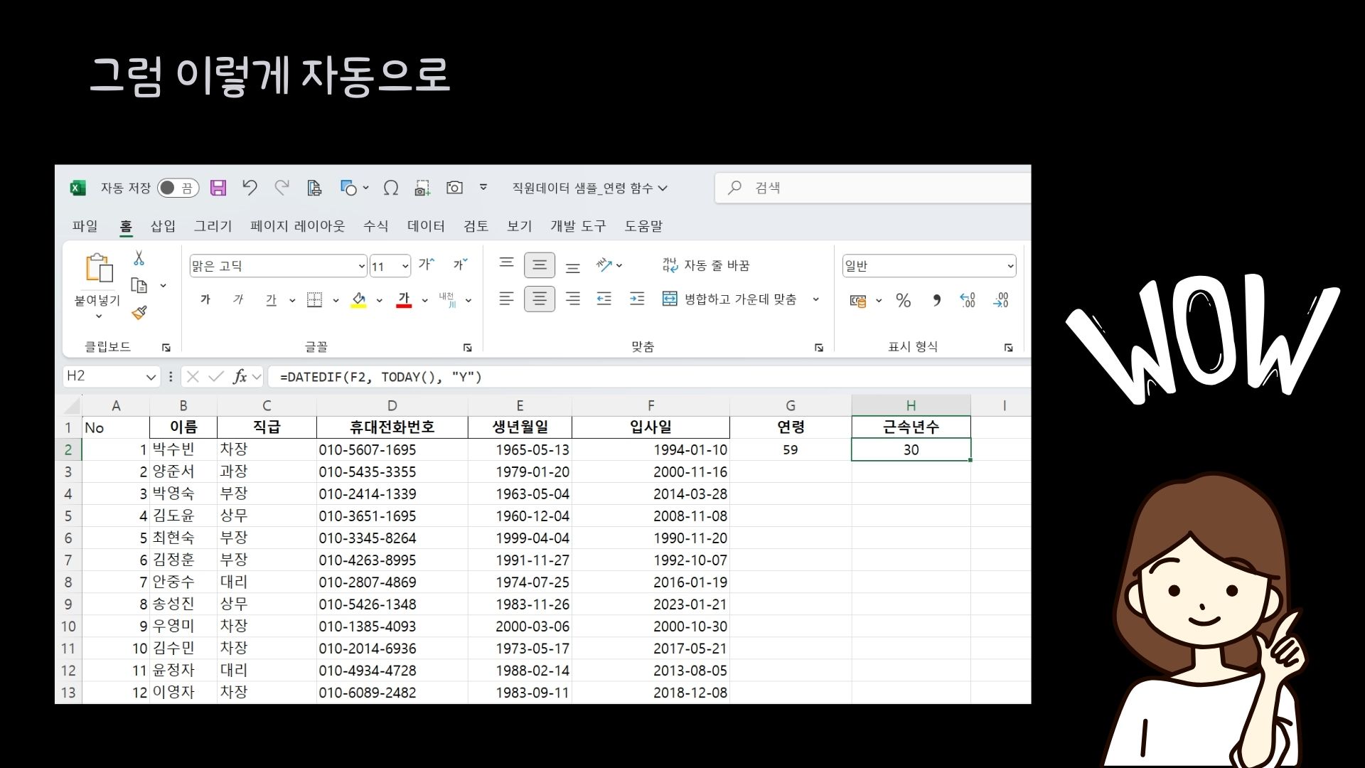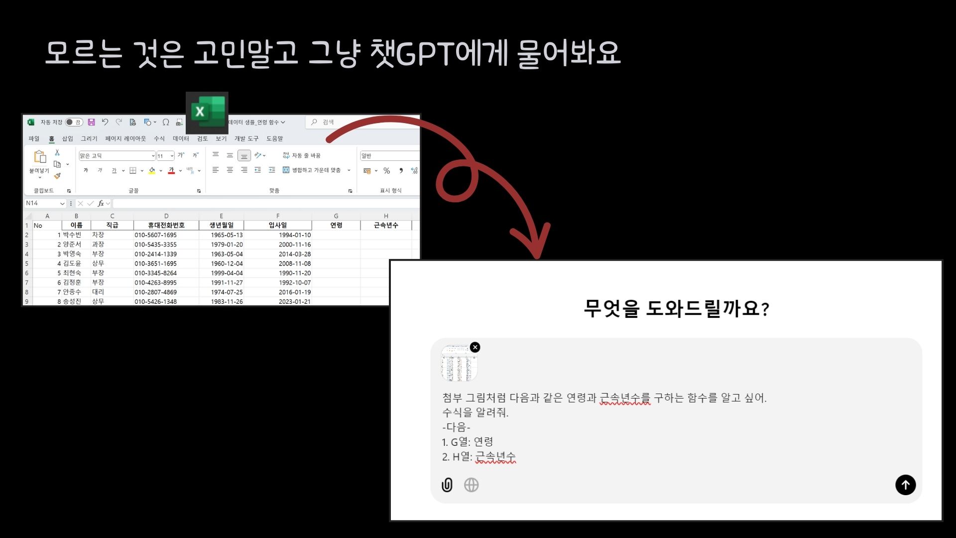 | [챗GPT강사 강성희]일잘러를 위한 챗GPT 활용법: 엑셀에서 연령과 근속년수 계산하기 (3) | 2024.11.19 |