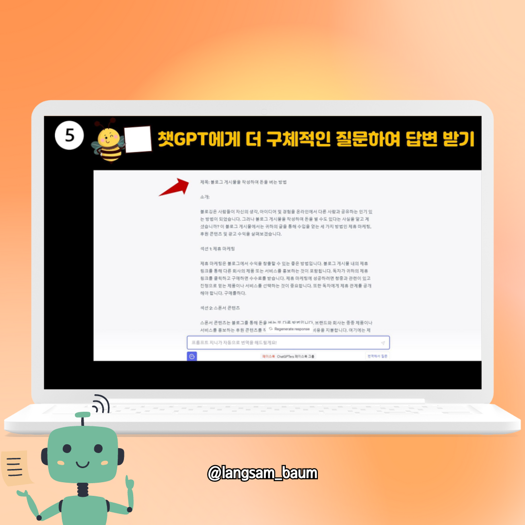 물론 챗GPT가 써준 글을 그대로 넣는 것보다, 여러분의 언어와 생각을 조금 더 추가해서 개성을 살려주세요! A