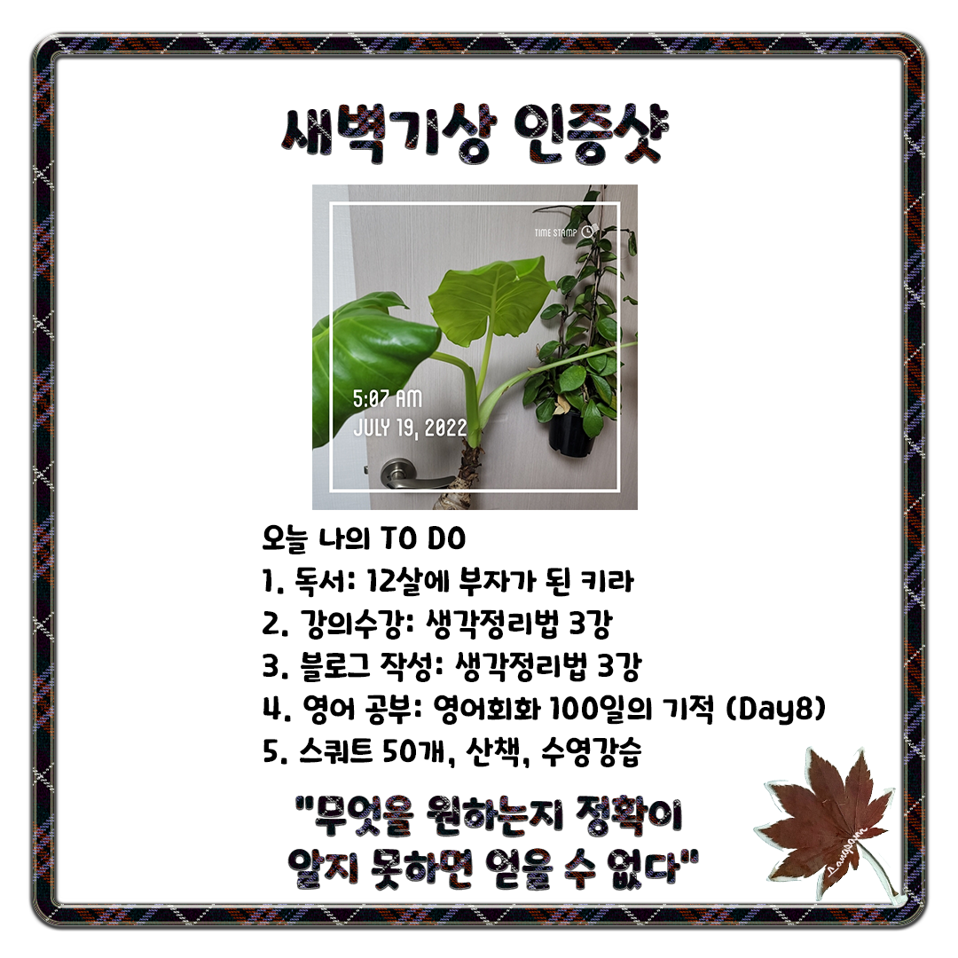 오늘 하루 삶 속에서 시간의 주인이 되기 위함이구요.
